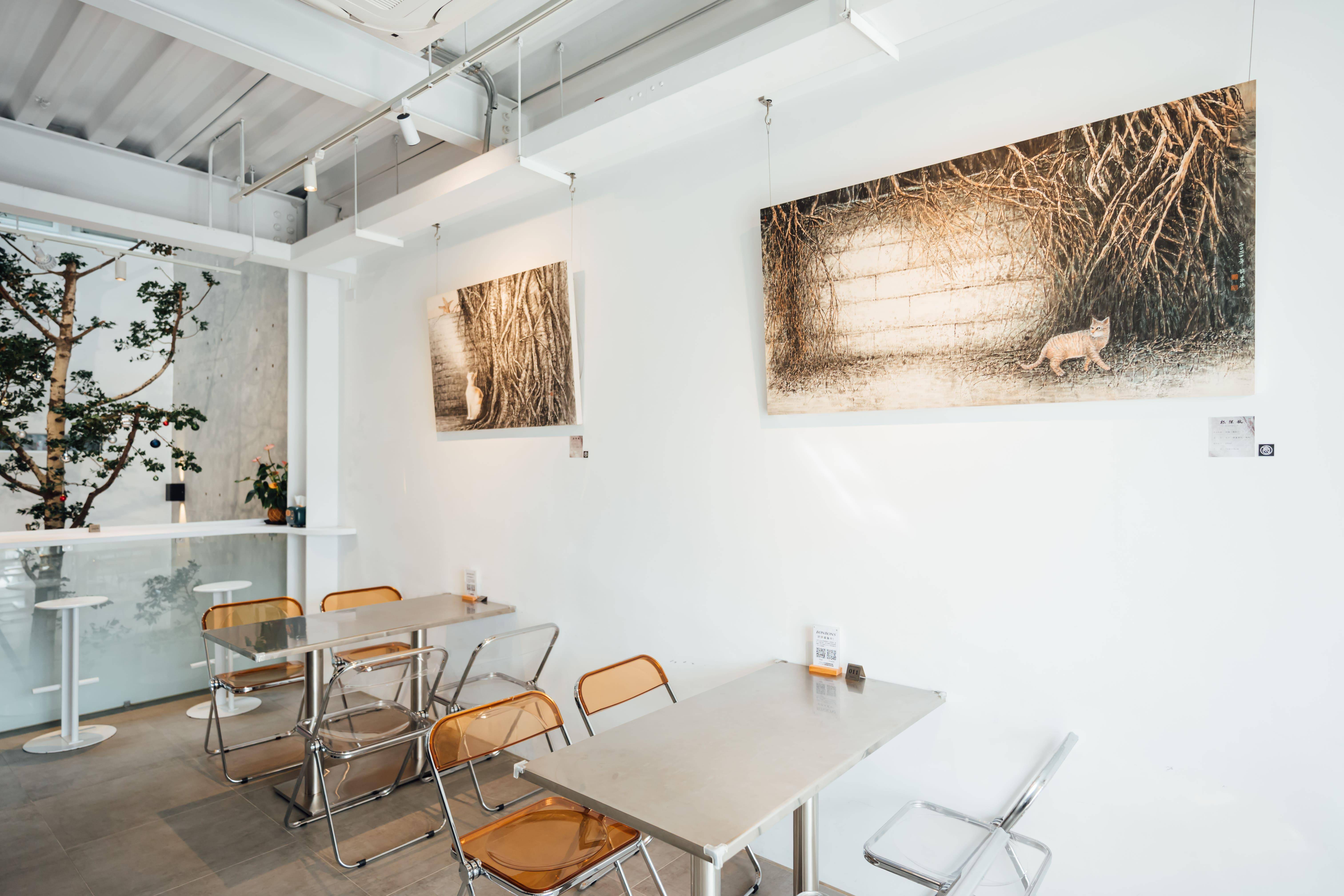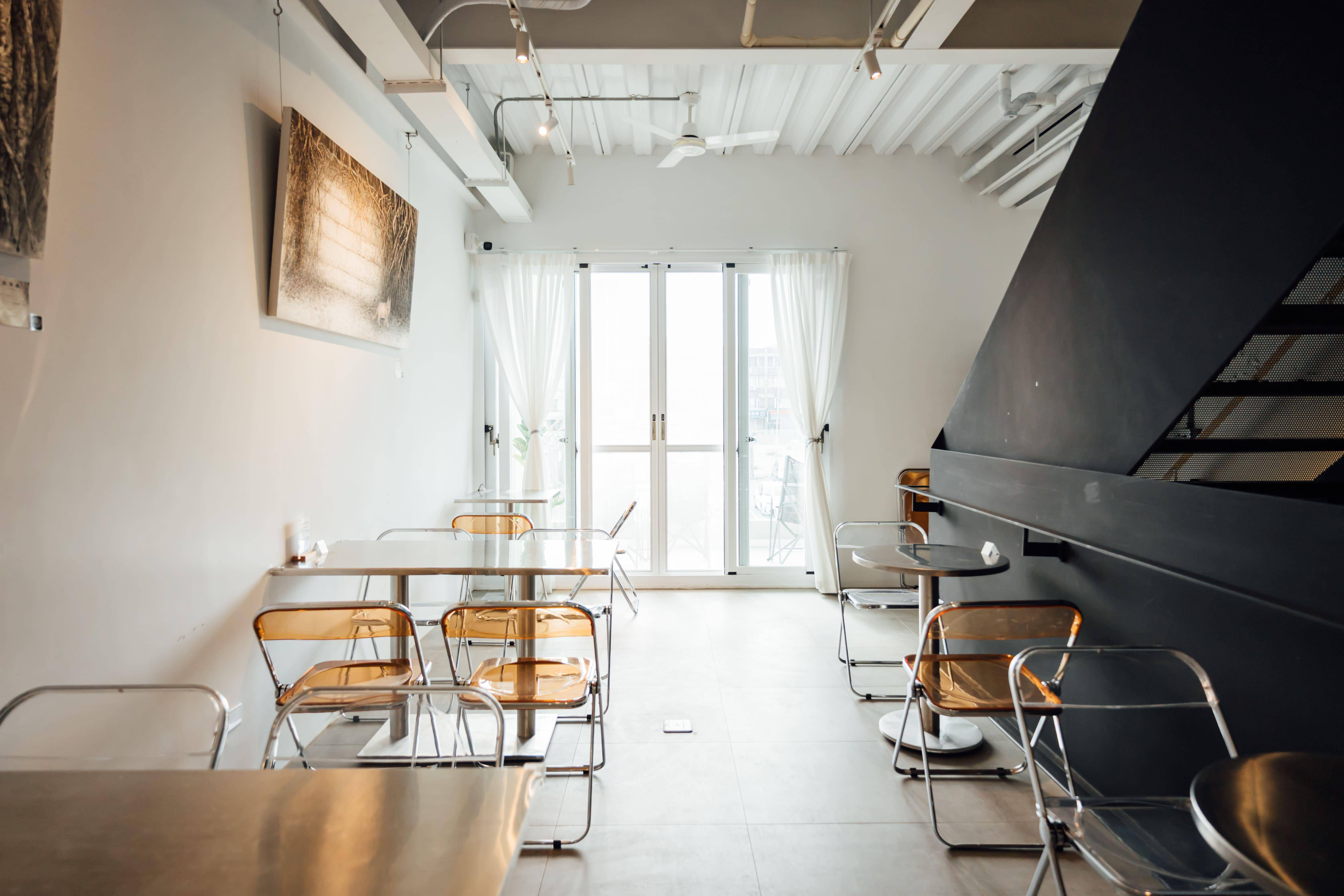 二樓空間約20坪,可容納20-25人,適合精緻型活動;牆面展覽區,可同時展5-10幅作品。